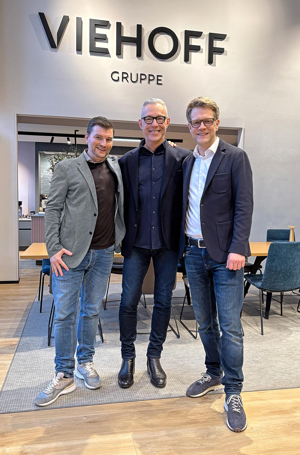 Freude über die erfolgreiche Übernahme: v.l. Christian Wiesner, Geschäftsführer Viehoff Gruppe, Frank Andreas Hammer und Johannes Kleikamp, Geschäftsführender Gesellschafter Viehoff Gruppe